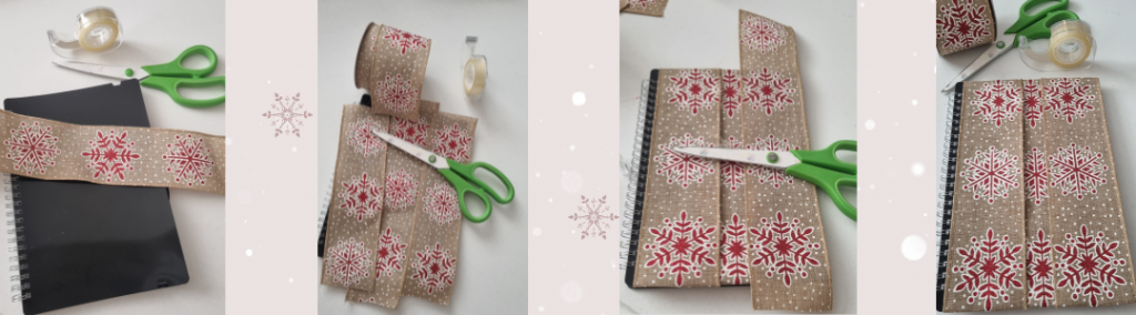 I used some Christmas ribbon for this step, using the kind with wire in the edges made it very easy to fold the ends over to the inside of the cover.