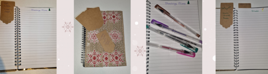 To make sure that your Christmas notebook is super useful you will need to spend a bit of time deciding what sections you need and how much space they might take up within the book. Of course you can always add more as you go along, but a bit of thinking time is definitely worth while. You might say that you are planning your planner!!
