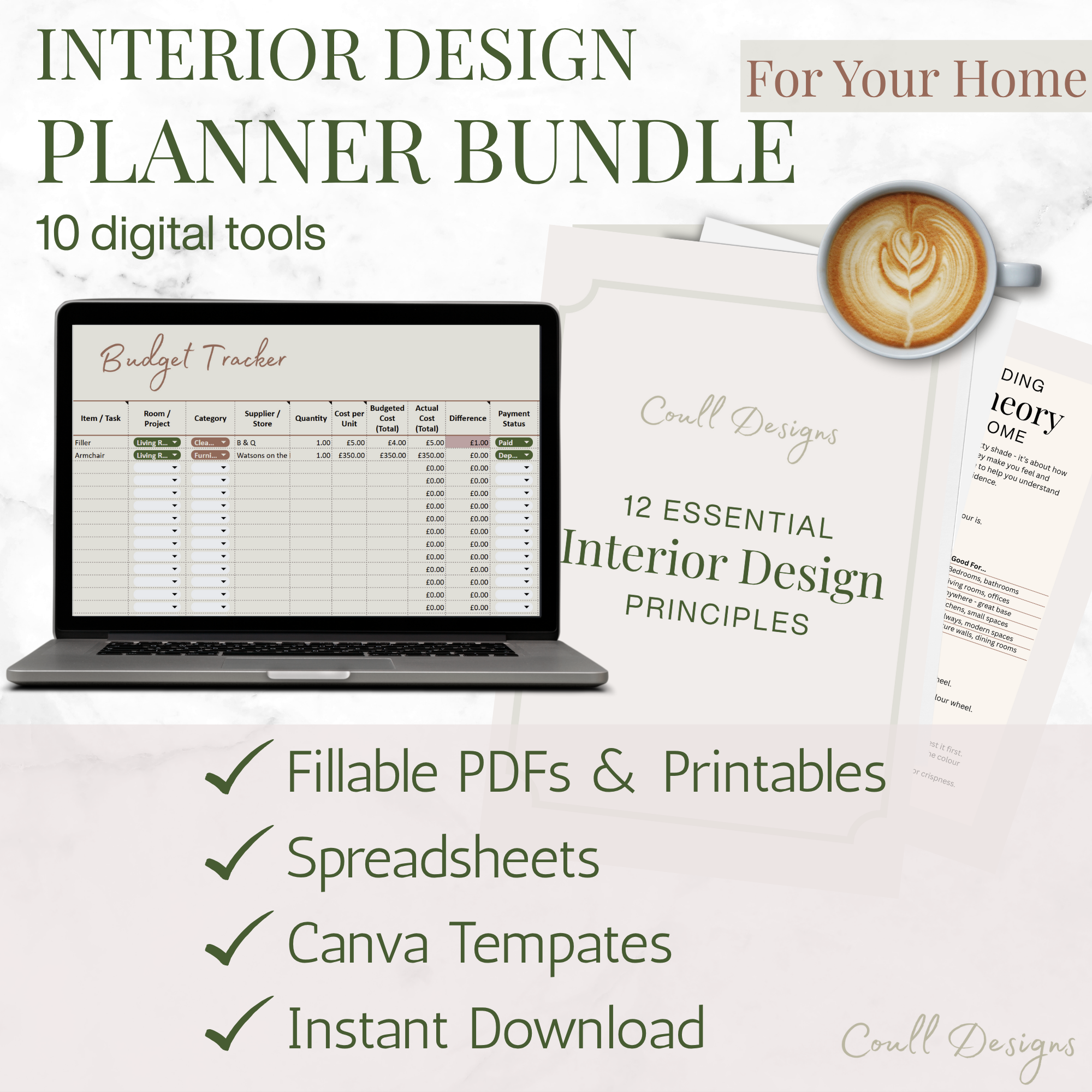 Transform your home with confidence using this Interior Design Planner Bundle – a complete set of 10 digital tools to help you plan, budget, and style every room like a pro. Perfect for homeowners, renters, DIY decorators, and interior design enthusiasts.