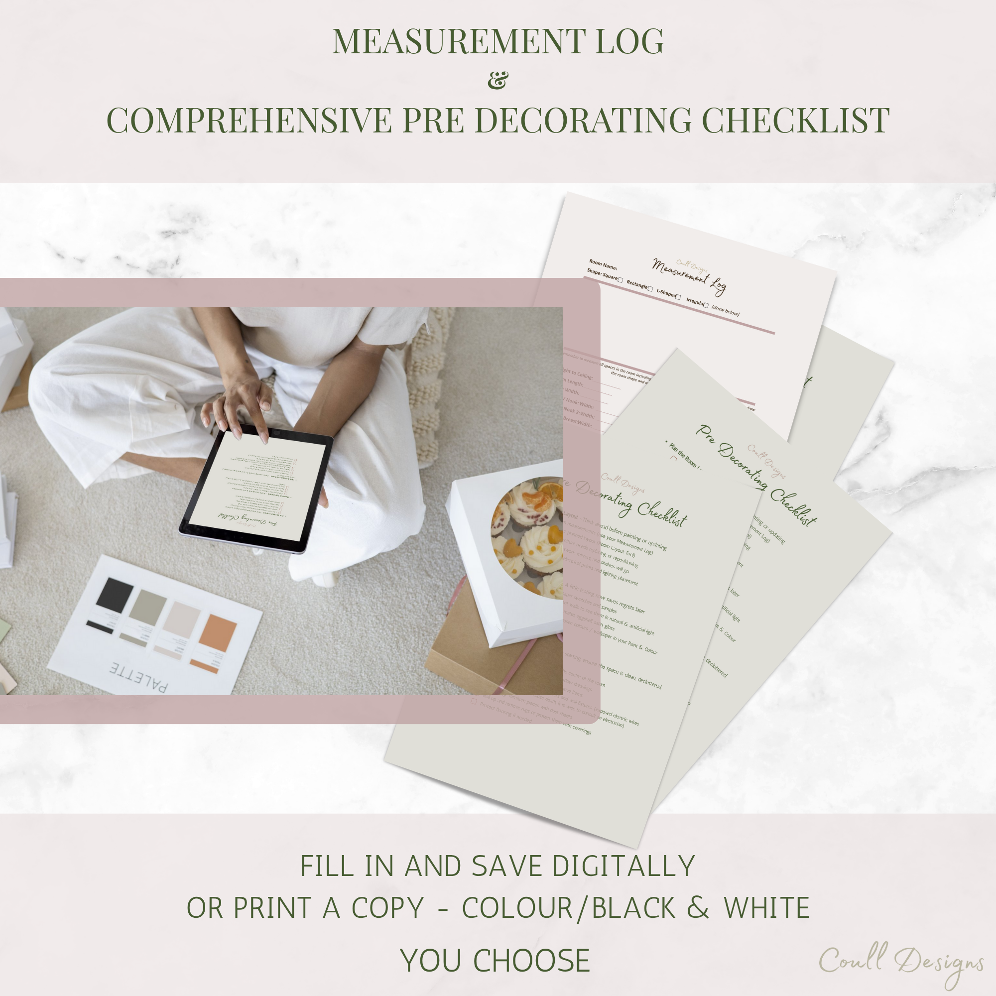 🌟Measurement Log (PDF, Fillable + Print-Friendly B&W) – record accurate dimensions for furniture and décor.